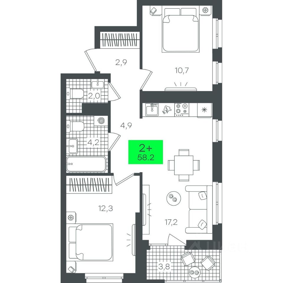 Продаётся 2-комнатная квартира в строящемся доме (В5.1 (Малкова, 19)), срок сдачи: III-кв. 2026, общей площадью 58.29 кв.м., на 17 этаже. Компания 4D приступила к строительству нового жилого комплекса "Гранд квартал". Новый ЖК находится в зеленой зоне Калининского района, южнее микрорайона Тюменская слобода.