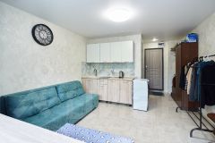 Пансионат расположен в Заречной части города, в районе с развитой инфраструктурой и удобной транспортной доступностью. Общая площадь объекта составляет 21 квадратный метр, что делает его компактным, но функциональным пространством для комфортного проживания или сдачи в аренду. Помещение полностью отремонтировано с использованием качественных материалов: пол выложен плиткой, санузел отделан керамической плиткой, установлены натяжные потолки с современным точечным освещением. Стены выровнены и оклеены новыми обоями, что придает интерьеру аккуратный и ухоженный вид.
