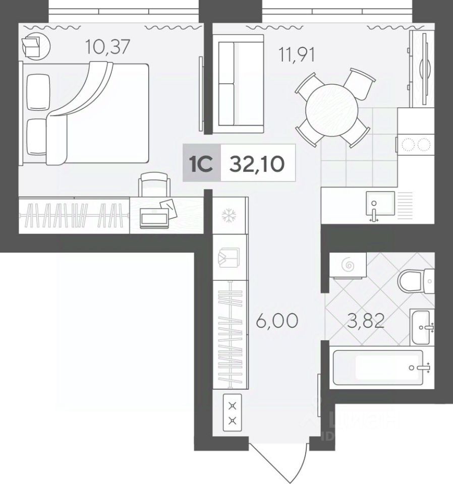 Продаётся 1-комнатная квартира в строящемся доме (ГП 2 (Сергея Корепанова, 34)), срок сдачи: IV-кв. 2027, общей площадью 32.1 кв.м., на 4 этаже. Новый жилой комплекс "Скандиа. Квартал у Леса" от Специализированного застройщика "СКАНДИА У ЛЕСА" расположен в г. Тюмень на ул. Бориса Прудаева.