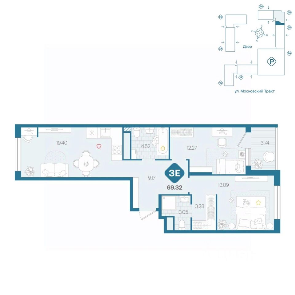 Двухкомнатная квартира с мастер-спальней, в которой есть гардероб, детской комнатой, комфортной кухней-гостиной. В квартире имеется балкон. Окна выходят на две стороны.