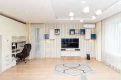 Просторная квартира формата 2+ в современном кирпичном доме сочетает функциональную планировку и продуманный дизайн. Главная особенность — большая лоджия с витражным остеклением, которая визуально расширяет пространство и наполняет комнаты естественным светом. В квартире выполнен качественный ремонт с вниманием к деталям: кварцвиниловая плитка на полу, ровные окрашенные стены, натяжные потолки с тщательно подобранным освещением, создающим комфортную атмосферу.