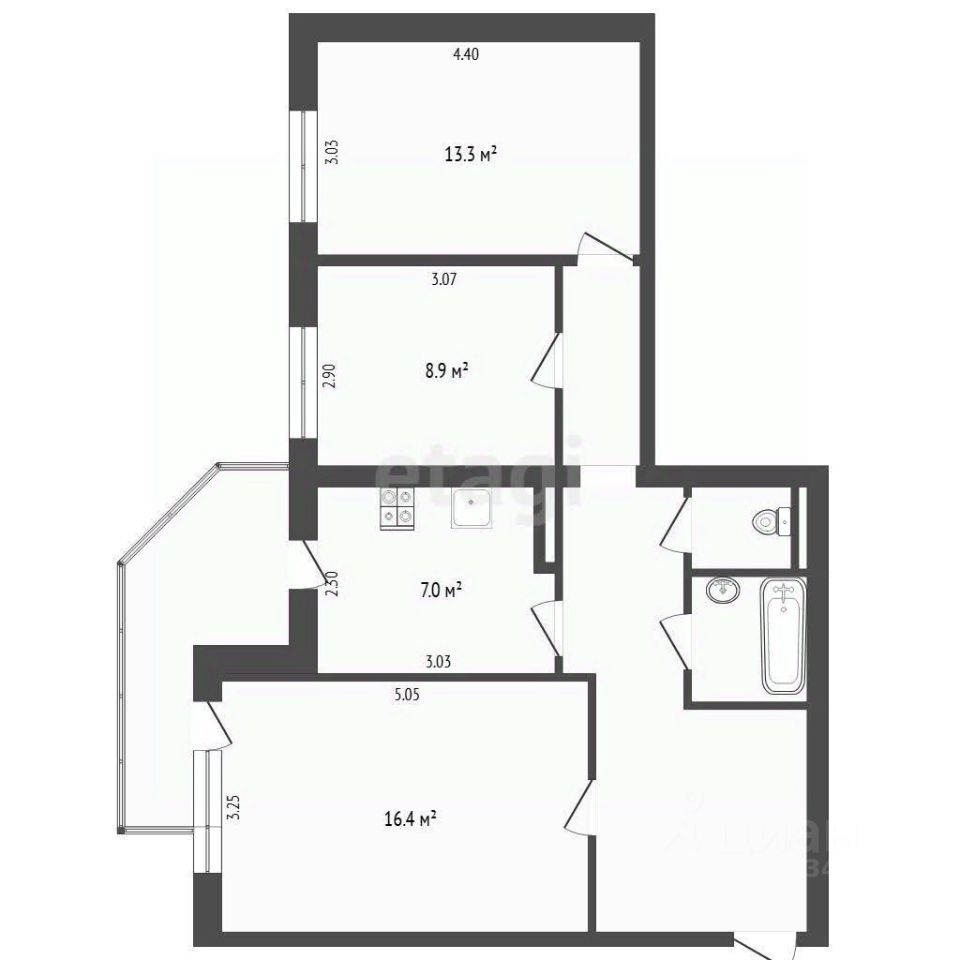 Уютная трехкомнатная квартира (расположена на 8-ом этаже 9-ти этажного дома)