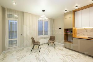 Вся мебель, включая модульный кухонный гарнитур с европейскими доводчиками BLUM, остается новым владельцам!