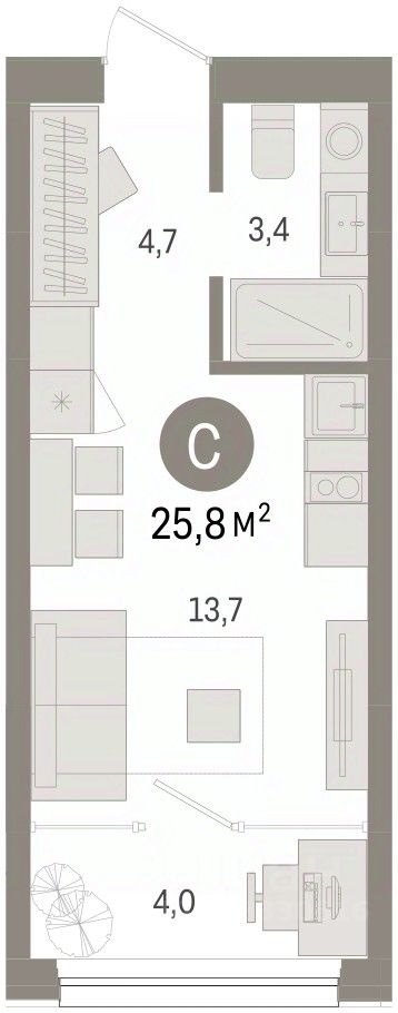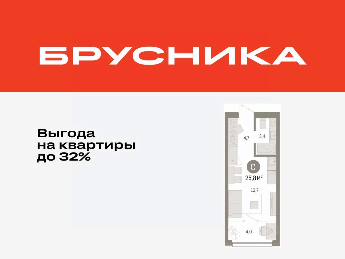 1-комн. студия с предчистовой отделкой в ЖК "Зарека" на 5 этаже. Общая площадь: 25.79 кв.м. Высота потолков 2.7 м.