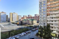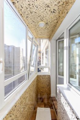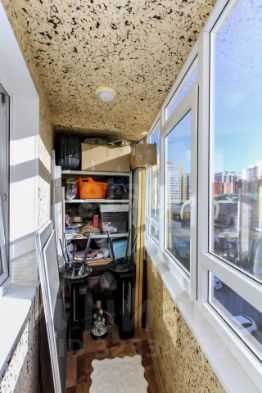 Остеклённый балкон с видом на город — отличное место для утреннего кофе или вечернего отдыха.