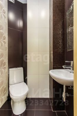 Раздельный санузел с дорогой сантехникой и стильной плиткой.