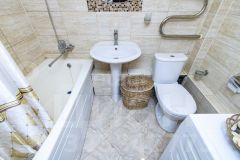 Санузел оборудован полностью, на стенах и полу кафельная плитка. Вся сантехника новая.