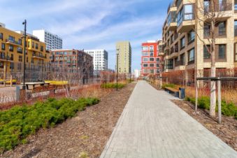 пешеходные и велосипедные дорожки, современные детские площадки,