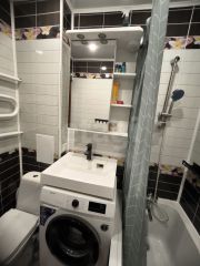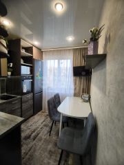 В квартире выполнен ремонт, уложен пол, плитка в ванной, пластиковые окна, натяжной потолок.  В подъезде вас встретят дружелюбные соседи, готовые прийти на помощь в любой ситуации.