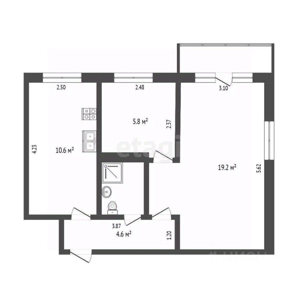 Потолок выровнен и окрашен. Современный санузел оформлен керамогранитом и оснащен душевой кабиной со стеклянными дверями. Есть бойлер для нагрева воды на период отключения горячей воды.