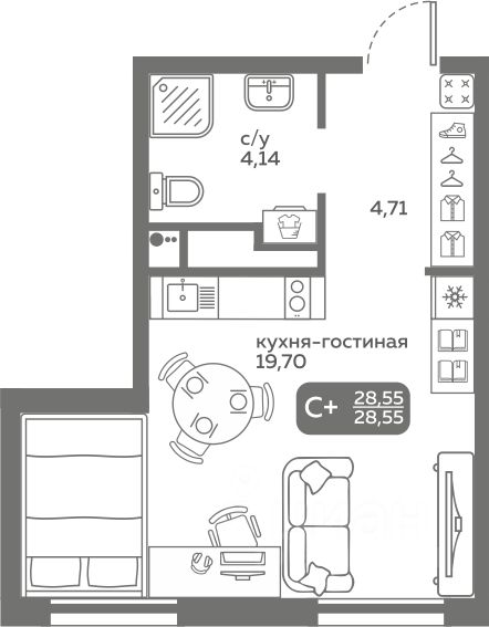 Прямая продажа от застройщика! Продается студия в строящемся ЖК "Меридиан Слобода", срок сдачи: I-кв. 2027, общей площадью 28.55 м², на 8 этаже из 20. Площадь кухни — 19.7 м².