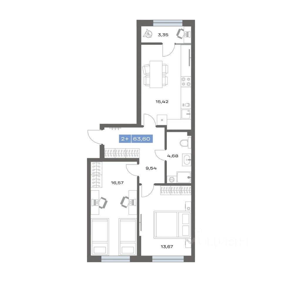 Продаётся 2-комнатная квартира в строящемся доме (ГП-2), срок сдачи: IV-кв. 2026, общей площадью 63.6 кв.м., на 1 этаже. Новый жилой комплекс "Ритм" от застройщика "СЗ Улей Девелопмент" расположен по адресу: г Тобольск, Территория Зоны Вузов.