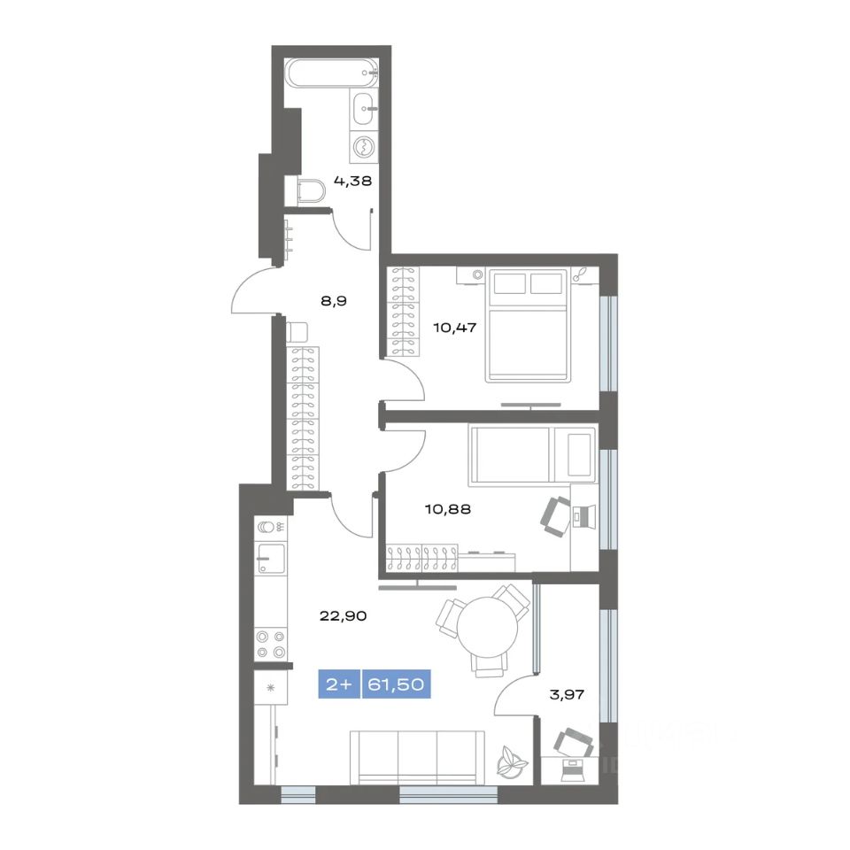 Продаётся 2-комнатная квартира в строящемся доме (ГП-2), срок сдачи: IV-кв. 2026, общей площадью 61.5 кв.м., на 4 этаже. Новый жилой комплекс "Ритм" от застройщика "СЗ Улей Девелопмент" расположен по адресу: г Тобольск, Территория Зоны Вузов.