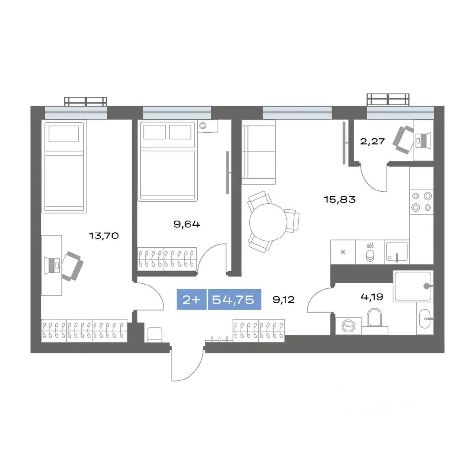 Продаётся 2-комнатная квартира в строящемся доме (ГП-2), срок сдачи: IV-кв. 2026, общей площадью 54.75 кв.м., на 8 этаже. Новый жилой комплекс "Ритм" от застройщика "СЗ Улей Девелопмент" расположен по адресу: г Тобольск, Территория Зоны Вузов.
