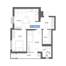 Продаётся 2-комнатная квартира в строящемся доме (ГП-2), срок сдачи: IV-кв. 2026, общей площадью 59.55 кв.м., на 14 этаже. Новый жилой комплекс "Ритм" от застройщика "СЗ Улей Девелопмент" расположен по адресу: г Тобольск, Территория Зоны Вузов.