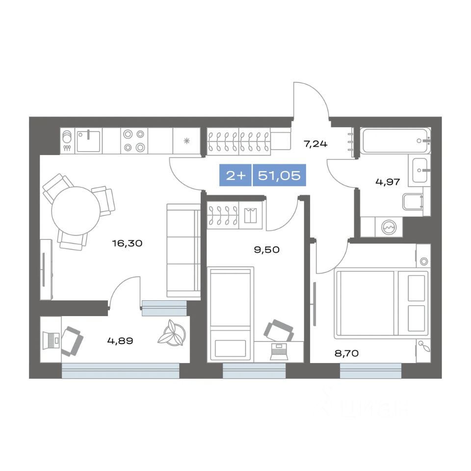 51,05 м²