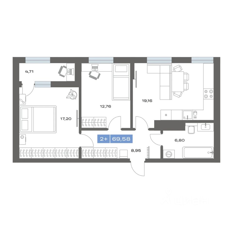 Продаётся 2-комнатная квартира в строящемся доме (Дом 17), срок сдачи: II-кв. 2027, общей площадью 69.58 кв.м., на 7 этаже. Новый жилой комплекс "Пятнашка" от компании "Улей Девелопмент" расположен в г. Тобольск на ул. переулок Радищева, 17.