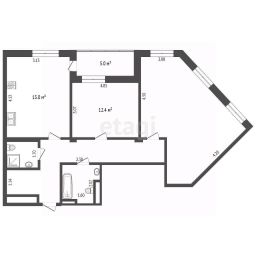 Планировка функциональна и включает просторную прихожую с гардеробной, большую кухню, изолированные комнаты и просторную спальню нестандартной, но удобной формы с гардеробной.