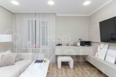 Обьект в отличном состоянии — был выполнен капитальный ремонт с использованием качественных материалов. В прихожей, санузле и на лоджии установлен теплый пол. Квартира продается меблированной (обсуждается при показе) и оснащенной техникой, включая кухонный гарнитур со встроенной техникой, обеденную группу, кровать, комод и проектор.