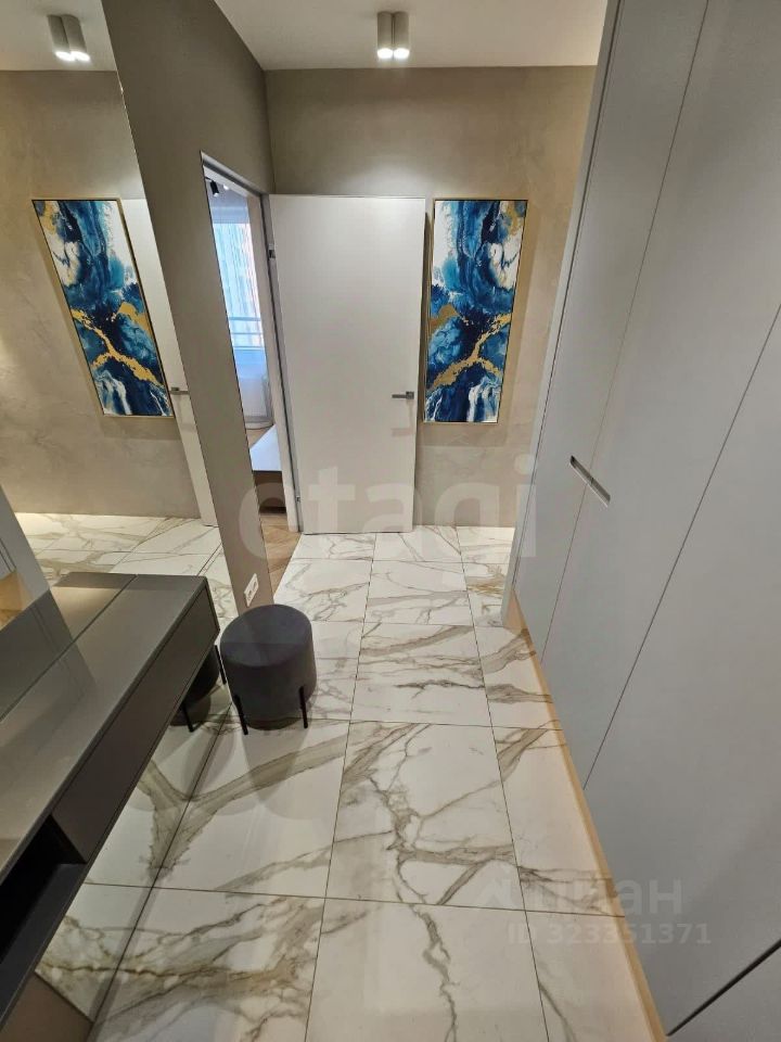 На полу керамогранит с подогревом, есть резервная вторая линия. На выходе находится выключатель - мастер клавиша, которая выключает весь свет в квартире. Стена окрашена антивандальной премиальной краской, противоположная декоративная штукатурка.