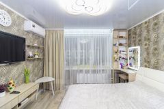Планировка квартиры идеально подходит для комфортной жизни большой семьи с детьми: три уютные комнаты и просторная кухня-гостиная, где можно проводить время вместе. Окна выходят на две стороны, что обеспечивает естественное освещение в любое время суток. Полы в кухне-гостиной, прихожей и санузлах оформлены керамогранитом с электрическим подогревом — забудьте о холодных ногах зимой!