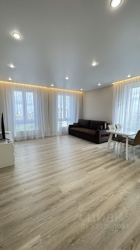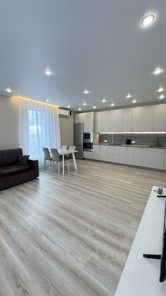 В квартире выполнен современный евро-ремонт в приятных и светлых тонах, создающих атмосферу уюта и спокойствия. Большая кухня-гостиная оснащена качественным и дорогим кухонным гарнитуром, а встроенная техника позволяет заниматься готовкой без лишних хлопот.