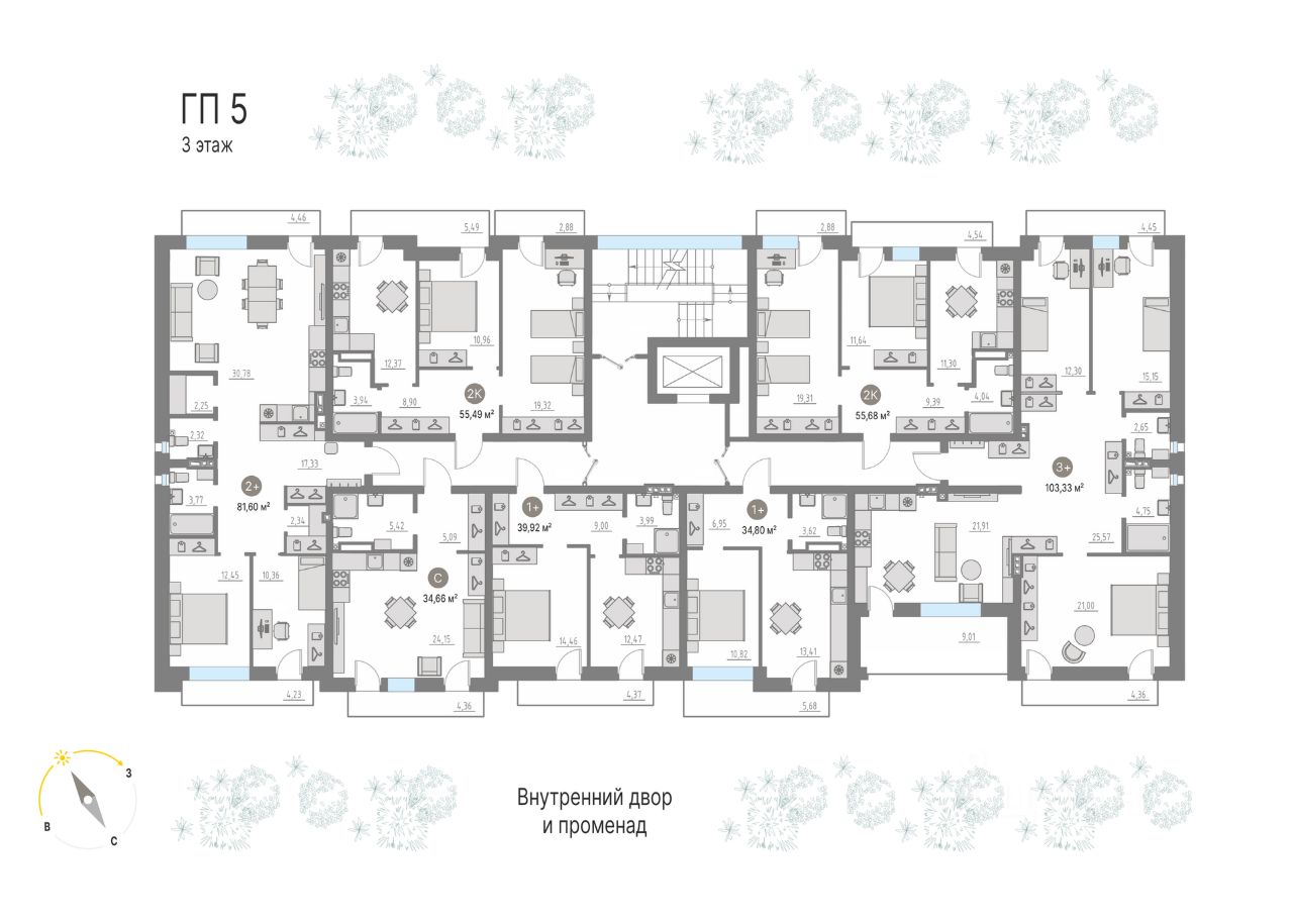 Продаётся 2-комнатная квартира в строящемся доме (ГП-5), срок сдачи: IV-кв. 2025, общей площадью 62.8 кв.м., на 3 этаже. Новый жилой комплекс "Кипрея Квартиры" от группы компании "Новая земля Девелопмент" расположен по адресу: Тюменская обл., с. Кулаково, по Ирбитскому тракту.