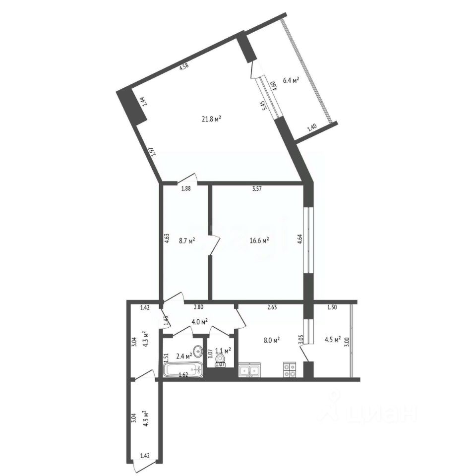 ДВУХКОМНАТНАЯ КВАРТИРА 71.2 м2 по ул.ЖУКОВСКОГО