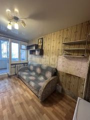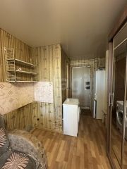 СРОЧНО! Продается студия в пансионате с косметическим ремонтом. Площадь 12,5 кв.м+лоджия. Можно как проживать, так и сдавать в аренду.  Балкон застеклен, обшит.Установлены хорошие пластиковые окна, на полу линолеум, на стенах обои, потолок натяжной.  В квартире есть свой санузел.