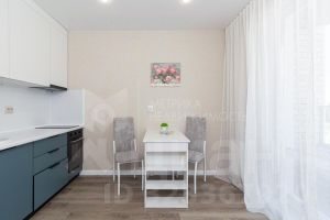 В квартире выполнен современный ремонт с использованием качественных материалов: натяжные потолки, кварц-виниловое покрытие на полу и гармонично подобранные обои светлых тонов на стенах. Установлены надежные входные и межкомнатные двери. Санузел выложен кафелем и оснащён функциональной сантехникой.