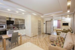 На пoлу пoстелен лaминат, сaнузeл, вaнная комната и входная группа, в кафеле в светлых тонах, натяжные потолки по всей квартире.