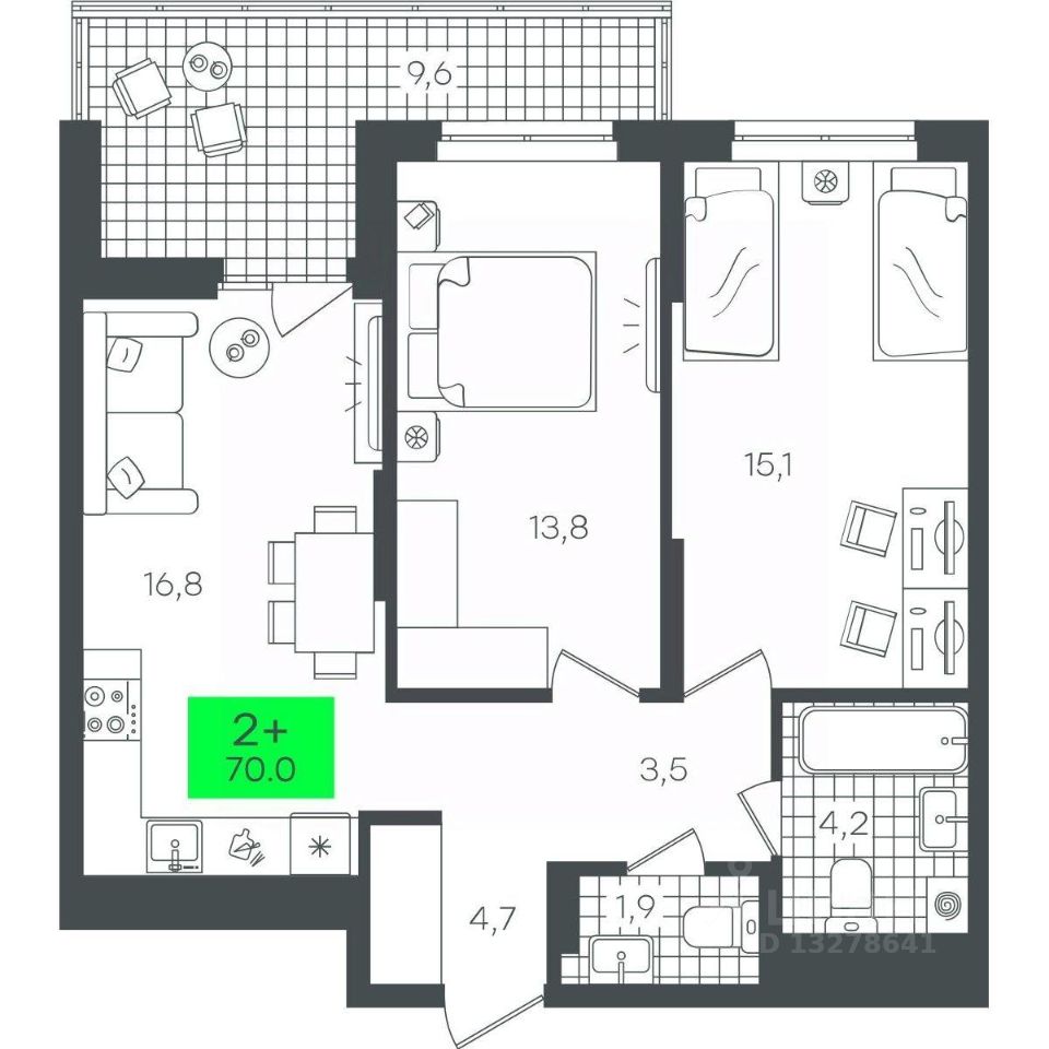 Продаётся 2-комнатная квартира в строящемся доме (3-В7.1 (Малкова, 17)), срок сдачи: III-кв. 2026, общей площадью 70.03 кв.м., на 4 этаже. Компания 4D приступила к строительству нового жилого комплекса "Гранд квартал". Новый ЖК находится в зеленой зоне Калининского района, южнее микрорайона Тюменская слобода.