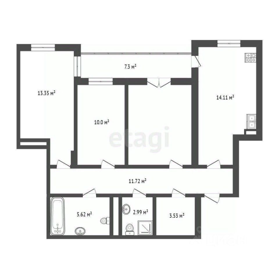 3-х комнатная квартира 74.5 кв.м. на 3-м этаже в ЖК Видный.