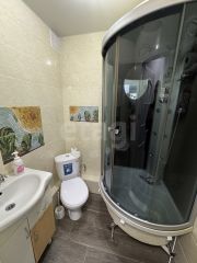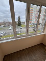 В квартире выполнен современный ремонт: на полу в кухне и прихожей керамогранит, в комнатах линолеум, потолки во всей квартире натяжные, стены ровные, полы ровные, косметический ремонт весь обновлен. Окна пластиковые, все радиаторы заменены. С коммуникациями тоже полный порядок. Вся мебель на фото остается.