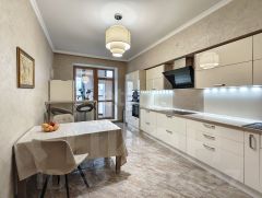 В квартире выполнен дизайнерский ремонт, сделана дополнительная шумоизоляция. Кухня полностью укомплектована бытовой техникой Siemens, установлен кухонный гарнитур фирмы Lorena, остается при продаже. В каждой комнате расположены кондиционеры. Гардеробная, встроенная мебель фирмы Mr.Doors . Высота потолков  3 м. Система отопления фирмы Rehau (Германия) (с приборами учета); - система электроснабжения (с приборами учета); - система водоснабжения (с приборами учета) и канализации. Сан.узлы: основной - совмещенный + гостевой + мастер-спальня с сан.узлом.