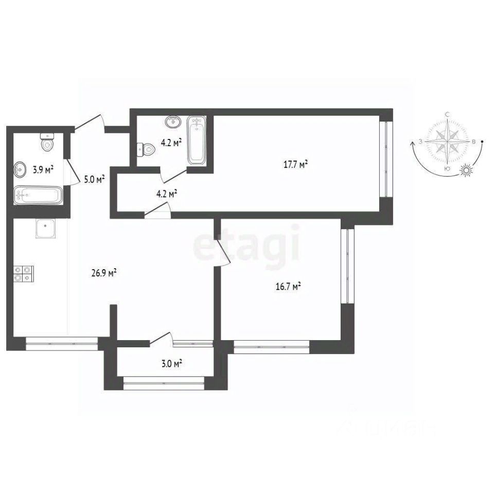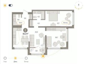 Просторная 2+ 82,3 кв.м. в ЖК Зарека от застройщика Брусника
