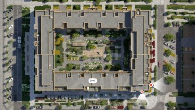 Во дворе нет машин. Это приватное пространство, попасть в которое могут только жители.