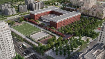 В квартале построят школу, рассчитанную на 1800 учеников, и два встроенных детских сада на 135 и 150 мест.