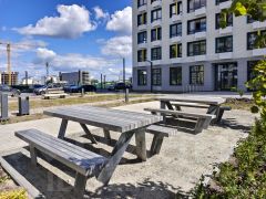 Жилой комплекс сочетает современные стандарты комфорта и развитую инфраструктуру. В здании предусмотрены коммерческие помещения с уже работающими магазинами, а в ближайшей перспективе — строительство школы и детского сада. Просторные озелененные дворы спроектированы по принципу "двор-парк": здесь оборудованы безопасные детские и спортивные площадки, зоны отдыха для взрослых. Входы в подъезды выполнены на уровне земли, что обеспечивает удобство для жителей с детьми и маломобильных групп.