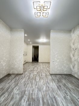 Современный интерьер квартиры продуман до мелочей: ровные поверхности стен, выполненные по строительному уровню (по маякам), позволяют легко разместить мебель и технику. Натяжные потолки создают эффект простора и визуально увеличивают пространство с высотой потолка 2,7м. Пол покрыт качественным ламинатом 33-го класса, который устойчив к износу и повреждениям.