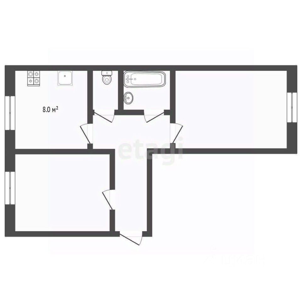 Продается уютная двухкомнатная квартира-распашонка в кирпичном доме.