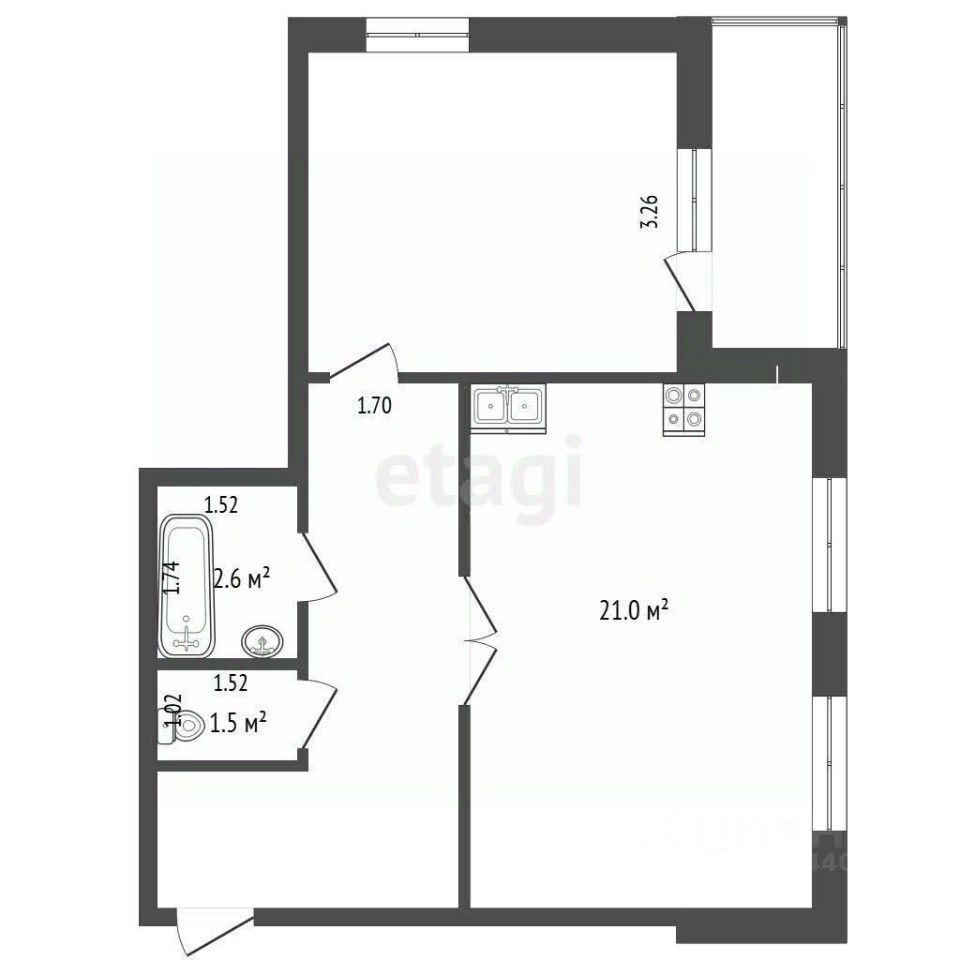 Угловое положение обеспечивает панорамное освещение через окна, выходящие на две стороны, черновая отделка — отличная возможность создать интерьер по своему вкусу. Общая площадь — 50,8 м². Потолки высотой 2.7 м создают ощущение простора и воздуха, просторный балкон.
