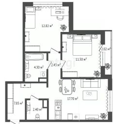 - 2 полноценные спальни 13 и 12 м2,