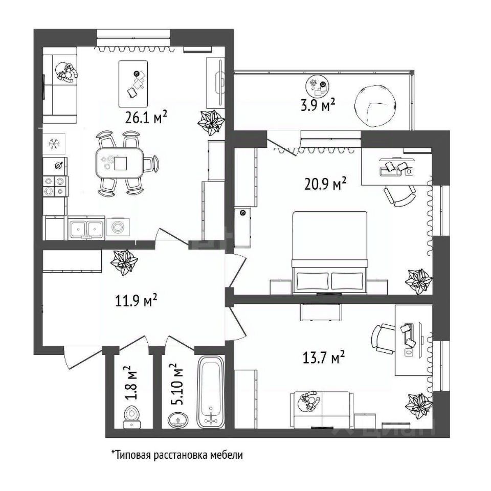 Квартира 2 + !!! (кухня-гостиная  26 м2 и две спальни по 20,9 и 13 м2). Все комнаты просторные, изолированные. Просторный удобный коридор (огромный шкаф-купе). При продаже остается кухонный гарнитур, длиной 4 метра, варочная панель и два шкафа-купе. И по-сути, приобретая двухкомнатную квартиру + , Вы можете получить модную евро-трешку. Вы не представляете, какая это Прекрасная Квартира с чудесным видом на лес! ЗАЕЗЖАЙ И ЖИВИ! Что ещё нужно для Счастья!) Вы нашли нас - квартиру в "свежем" кирпичном доме с самым лучшим расположением! Все знают о достоинствах кирпичного исполнения, а наш дом построен в лучших, по-хорошему, консервативных его традициях одним из самых опытных и надежных застройщиков города: красивый добротный керамический кирпич с толщиной стен свыше 80 см, гарантирует прекрасную тепло и звуко-изоляцию. Идеальное состояние квартиры - выполнен основательный ремонт из современных строительных материалов, по-настоящему, в хорошем смысле "заморочились", потому что для себя делали!) Современный ремонт, отличная мебель, кухонный гарнитур, цельные полы ламинат 33 класса. Ванная комната с санузлом в кафеле. Помимо прочего покупка квартир в кирпичных домах всегда отличная инвестиция - такие дома долгие годы не утрачивают своей визуальной и моральной привлекательности. Рядом: Школа N58 с дошкольным отделением, детский сад с ясельной группой от 2-х лет! Вблизи находится река Тура, чудный лес, дачи, зона отдыха "Воронинские горки", спортивный комплекс ледовый дворец "Партиком"! С удовольствием проведу показ этой замечательной квартиры в удобное для Вас время!
