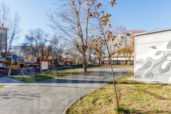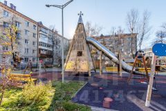 Тихий зелёный двор с детской площадкой и зоной отдыха.