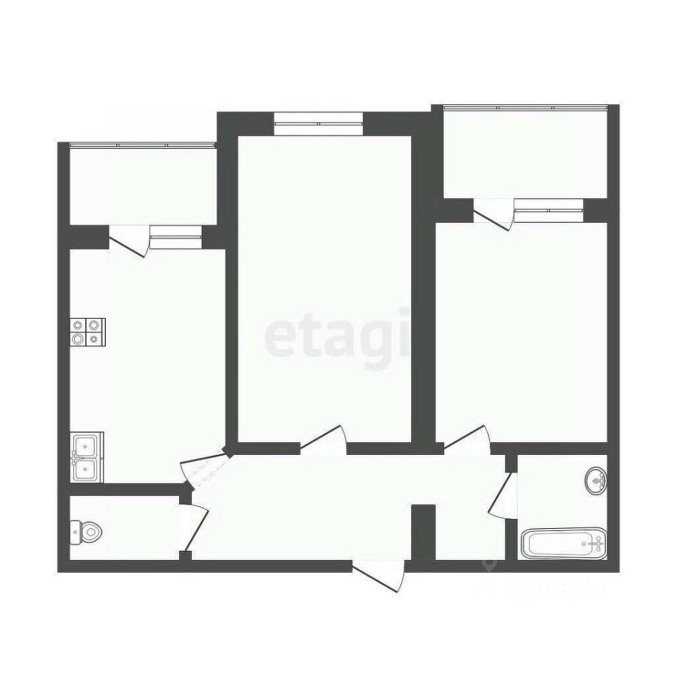 2 балкона, застеклены
