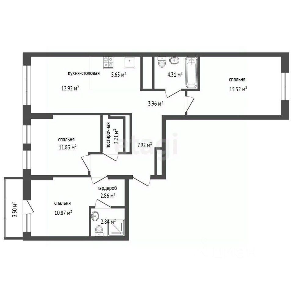 К продаже представлена просторная квартира формата 3+ площадью 84 кв.м. в центре города от любимого застройщика большинства тюменцев - "Брусника".