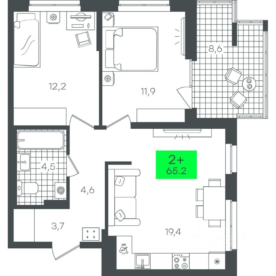 Продаётся 2-комнатная квартира в строящемся доме (3-В7.1 (Малкова, 17)), срок сдачи: III-кв. 2026, общей площадью 65.22 кв.м., на 4 этаже. Компания 4D приступила к строительству нового жилого комплекса "Гранд квартал". Новый ЖК находится в зеленой зоне Калининского района, южнее микрорайона Тюменская слобода.
