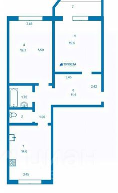 Планировка самая комфортная, потому что эргономичная, помещения правильной формы, кухня 15 квм., комнаты 19 и 14 квм, балкон облагорожен. Санузел с мебелью и стиральной машиной. Кухня с дорогим кухонным гарнитуром и встроенной техникой. А так же, остаются два кондиционера, два шкафа, обеденная зона, холодильник, два дивана.