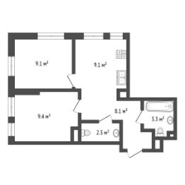 Две изолированные комнаты ( 9.1 и 9.4 м²) — идеально для семьи с детьми или тех, кто хочет обустроить спальню, детскую и рабочий кабинет.
